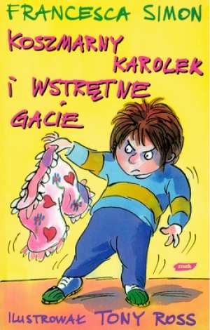 Cześć! Jestem Karolek i wszyscy mówią, że jestem ko-szmar-ny! Horror nad horrory! Moja cioteczna prababcia Gertruda wciąż zapomina, że jestem chłopakiem, a nie jakąś słodką Karusią. I… właśnie wysłała mi w prezencie różowe majteczki. To jakiś senny koszmar! Ale przecież musi być sposób, żeby pozbyć się tych wstrętnych gaci. Jakby tego było mało, to moi zrzędliwi rodzice uparli się, żebym codziennie jadł talerz pełen wstrętnej zieleniny. Tfu! Z tony warzyw to Karolek najbardziej lubi frytki w morzu keczupu! Kolekcja arcydożartych żartów i niecnych podstępów, które każde dziecko chciałoby zrobić, ale wystarczy, jak o nich poczyta lub ich posłucha. Najbardziej koszmarny bohater literatury dziecięcej powraca! Seria o „Koszmarnym Karolku” bawi od prawie 30 lat, a jego postać i arcydożarte żarty są wciąż aktualne dla kolejnego pokolenia czytelników. Szalony humor, niegrzeczny bohater, krótkie, łatwe w lekturze opowiadania – to jest to, co dzieci (i dorośli też) lubią najbardziej. [lubimyczytac.pl]