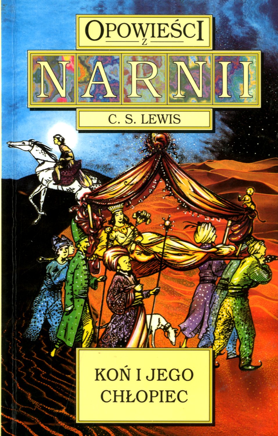 Jednak w niedalekim Kalormenie tyrański władaca aż cały gotuje się z rządzy zawładnięcia sąsiednimi państwami. Doskonała okazja do podboju pojawia się wraz z namiętnością (nieodwzajemnioną, (...) rzecz jasna) następcy tronu w Kalormenie, dzikiego księcia Rabadasza do królowej Zuzanny.