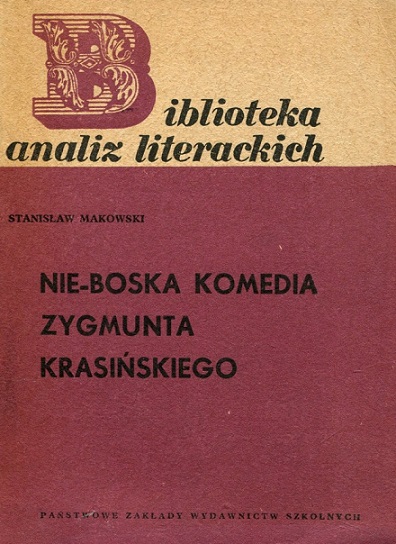 "Nie-boska komedia" Zygmunta Krasińskiego / Stanisław Makowski. - Wydanie 2 uzupełnione - Warszawa : Wydawnictwa Szkolne i Pedagogiczne, 1975. - 125, [3] strony : ilustracje, fotografie, portret ; 17 cm.
