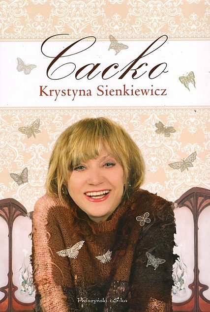 Dlaczego „Cacko”? – bo zapraszam na piękne podwórko, do pięknego domu, w piękną podróż po moim własnym świecie. Uchylam drzwi i proszę do środka. To nie jest biografia. Nie ma tu dat, nie ma chronologii, nie ma ku pamięci. To zaproszenie do świata lirycznej komediantki Krystyny Sienkiewicz. Cudownej, magicznej, pełnej urody przestrzeni wrażeń i odczuć wartych zapisania i zapamiętania. To podróż po życiowych drogach i bezdrożach pamięci, po pięknej krainie zdobionej wyjątkowym gustem i talentem. A raczej wieloma talencikami. To również manifest urody życia. Głośny manifest umiejętności cieszenia się z rzeczy małych i dużych, radzenia sobie w każdych okolicznościach i postrzegania wszystkiego w jasnych barwach. To zachęta do czerpania z życia pełnymi garściami i tworzenia własnego, niepowtarzalnego świata, w sobie i wokół siebie. Lekcja pokory i umiejętności dzielenia się radością i wiarą. To zaklęty w opowieściach balsam dla tych, którzy kiedykolwiek choć przez chwilę stracili nadzieję i zawahali się. A wszystko podane w sposób, w jaki Krystyna Sienkiewicz patrzy na świat i ludzi – dowcipnie, inteligentnie, czasem komicznie, innym razem tragikomicznie, a kiedy trzeba melancholijnie i lirycznie.
