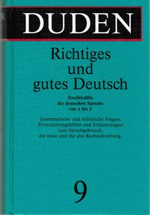 Richtiges und gutes Deutsch : Wörterbuch der sprachlichen Zweifelsfälle / hrsg. und bearb. vom Wissenschaftlichen Rat der Dudenredaktion. - 4, auf der Grundlage der amtlichen Neuregelung der deutschen Rechtschreibung neu bearb. und erw. Aufl. - Mannhein [u. a.] : Dudenverlag, 1997. - 859 stron ; 19 cm.