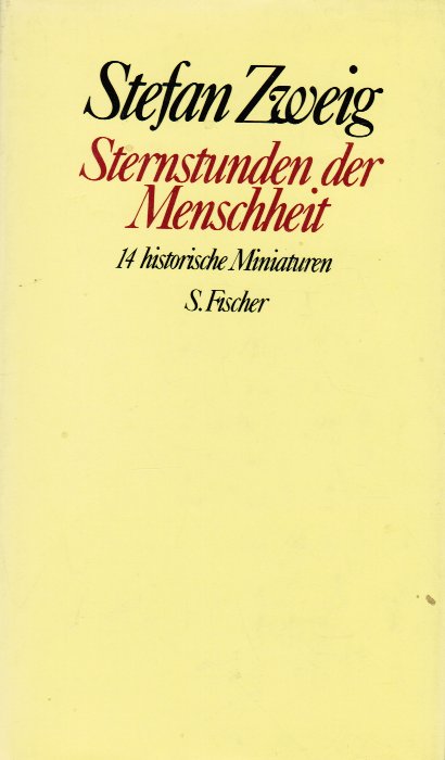 Książka w języku niemieckim. Sternstunden der Mensch to zbiór 14 ostatnich miniatur historycznych, napisanych przez Stefana Zweiga, opowiadających o wydarzeniach historycznych, których skutki zmieniły historię ludzkości. Teksty nie są analizami historycznymi, a każda z nich koncentruje się na opisie biograficznym.