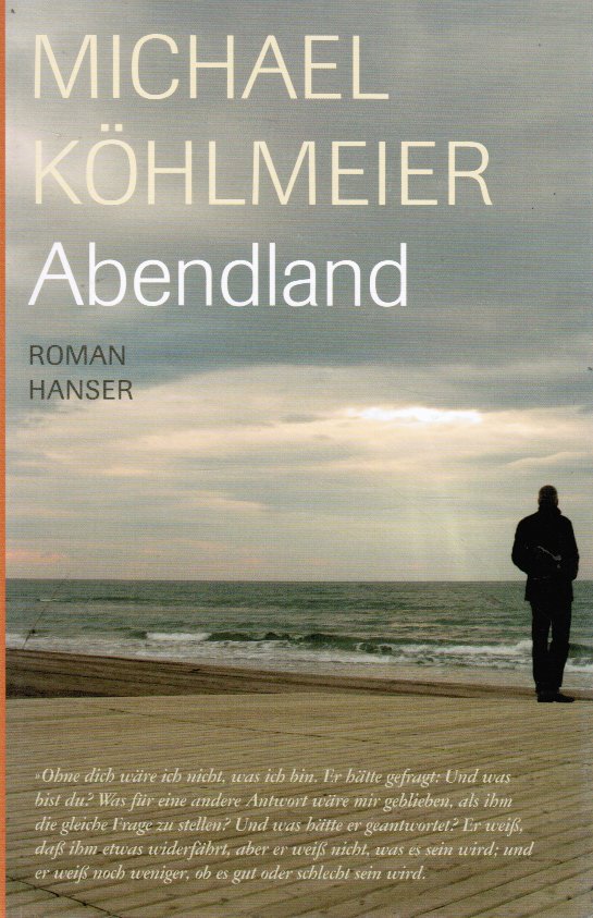 Książka w języku niemieckim. Abendland to dosłownie powieść pokoleniowa – przez narrację pokazano najbardziej różnych od siebie ludzi, buntujących się przeciwko sobie, aby następnie zawrzeć pokój.