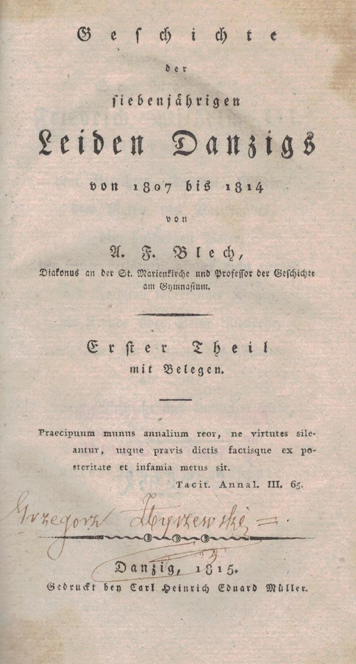 Współoprawne z: Geschichte der siebenjahrigen Leiden Danzigs von 1807 bis 1814. Tl. 2.