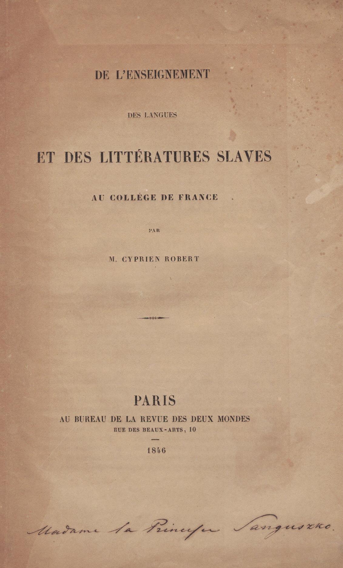Extrait de La Revue des Deux Mondes Livraison du 15 janvier 1846.