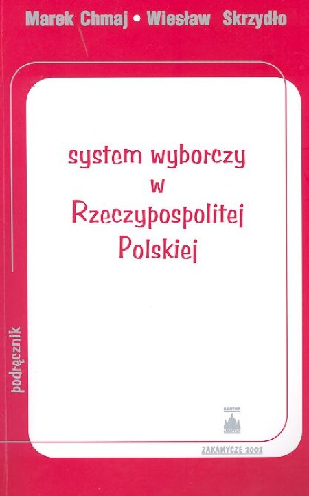 System wyborczy w Rzeczypospolitej Polskiej / Marek Chmaj, Wiesław Skrzydło. - Stan prawny na dzień 1 czerwca 2002 r. - Kraków : Kantor Wydawniczy Zakamycze, 2002. - 189, [1] strona ; 23 cm.