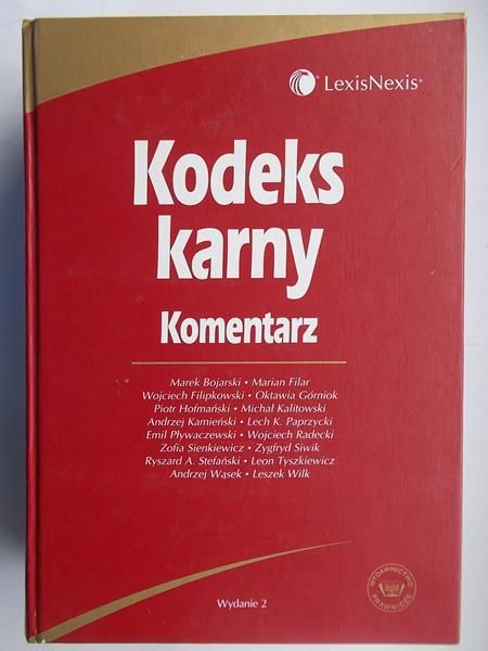 Kodeks karny : komentarz / Marek Bojarski [et al.] ; pod redakcją Oktawii Górniok. - Wydanie 2, stan prawny na 15 listopada 2005 r. (uwzględnia zmiany wchodzące w życie 17 grudnia 2005 r.). - Warszawa : Wydawnictwo Prawnicze LexisNexis, 2006. - 1058, [2] strony ; 24 cm.