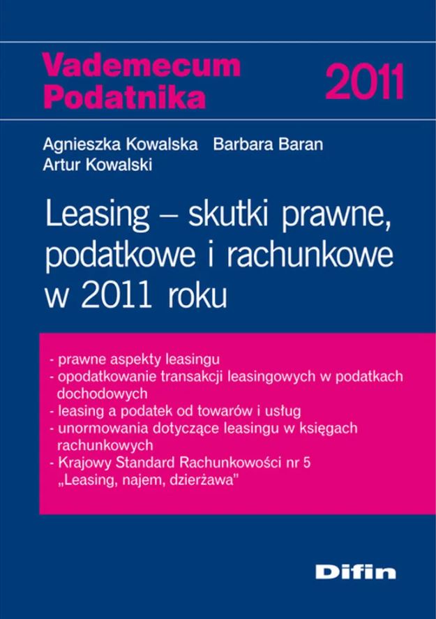 Leasing to forma finansowania inwestycji. Może być ona szczególnie atrakcyjna w dobie kłopotów z pozyskaniem środków finansowych, a zwłasz­cza kredytów bankowych. W wielu bowiem przypadkach leasing jest łatwiej­szy do uzyskania, niż kredyt bankowy, a często realnie tańszy od kredytu. Dynamicznie rozwijający się rynek usług leasingowych oraz wprowadzone w ostatnich latach unormowania prawne w zakresie leasingu rodzą wiele problemów natury teoretycznej i praktycznej. Ich rozwiązywanie nie jest proste, zwłaszcza że w odmienny sposób problematykę leasingu normują przepisy Kodeksu cywilnego, prawa podatkowego i przepisy o rachunkowości. Publikacja kompleksowo przedstawia problematykę leasingu i jest skie­rowana do wszystkich osób i firm zainteresowanych tą formą finansowania inwestycji. Zawiera stan prawny na styczeń 2011 r. [pzwl.pl]