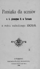 Współoprawne z: Pamiątka dla uczniów c.k. gimnazjum II. w Tarnowie z roku szkolnego 1903/4. Pamiątka dla uczniów c.k. gimnazjum II. w Tarnowie z roku szkolnego 1904/5.