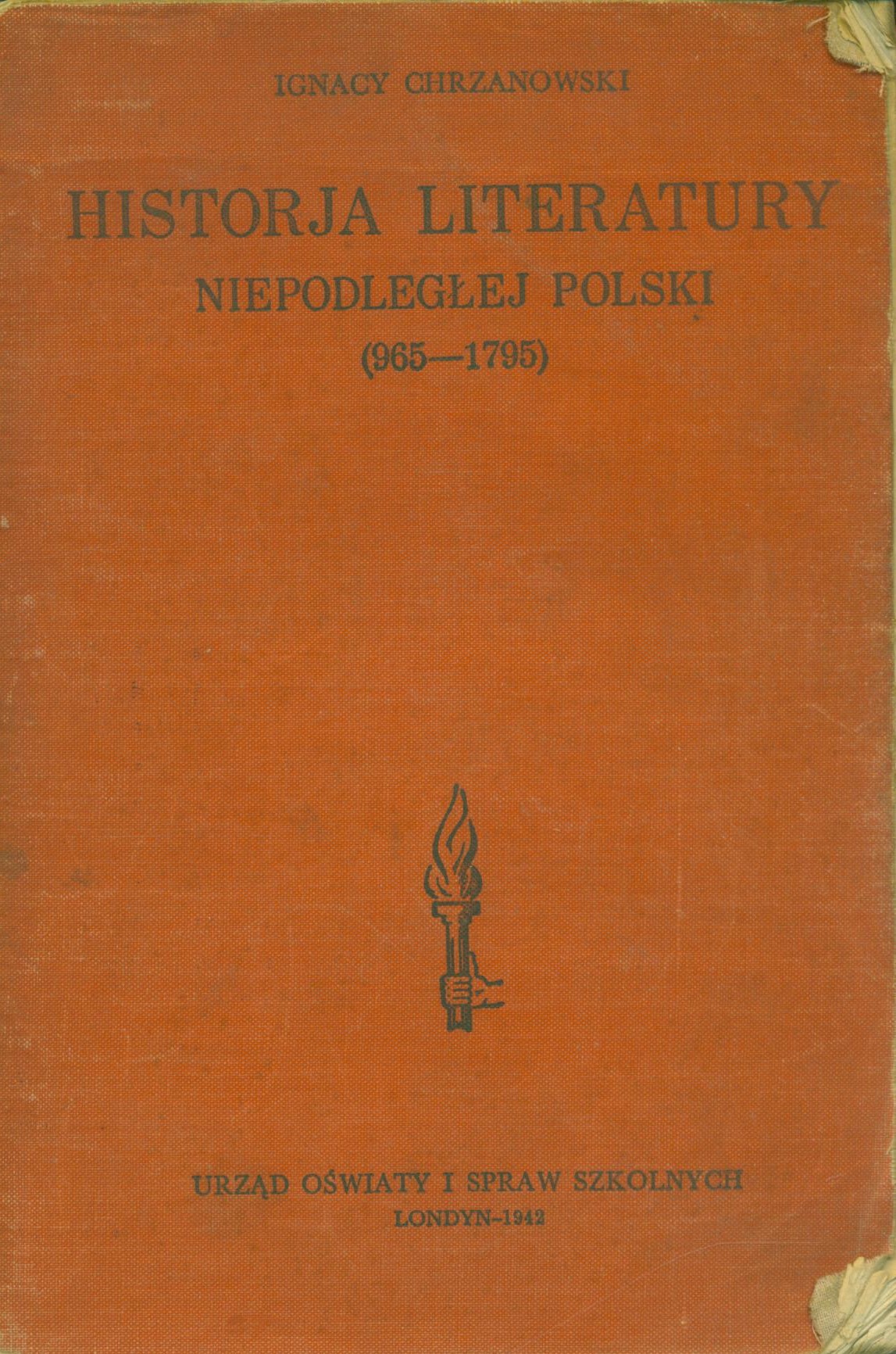 Historja literatury niepodległej Polski (965-1795) : (z wypisami) / Ignacy Chrzanowski. - Wydanie 11. - Londyn : Urząd Oświaty i Spraw Szkolnych, 1942 (Edinburgh : Thomas Nelson & Sons). - IX, [1], 739 stron ; 22 cm.