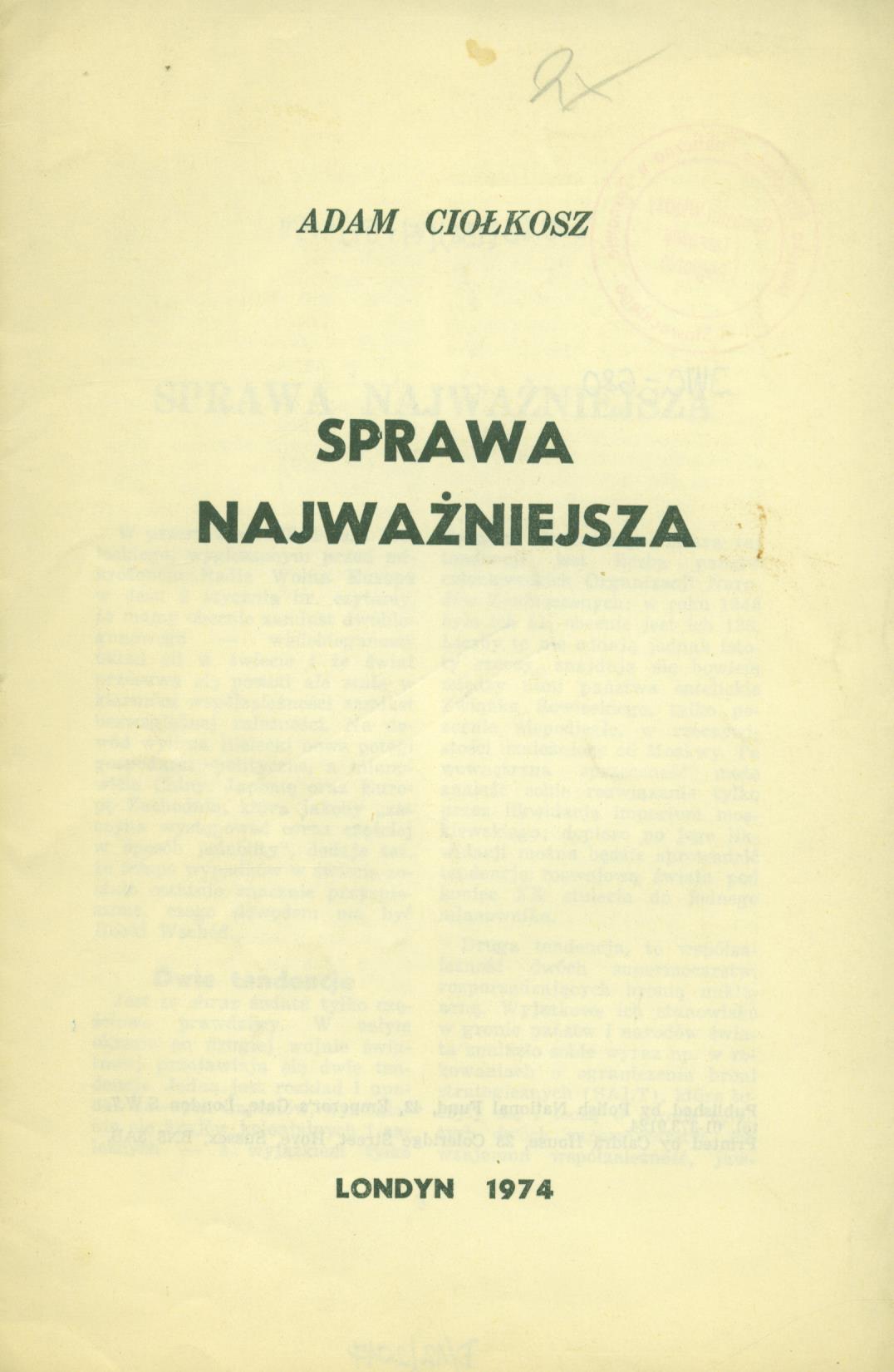 Przedr. z "Tygodnika Polskiego", Londyn 1974 r.