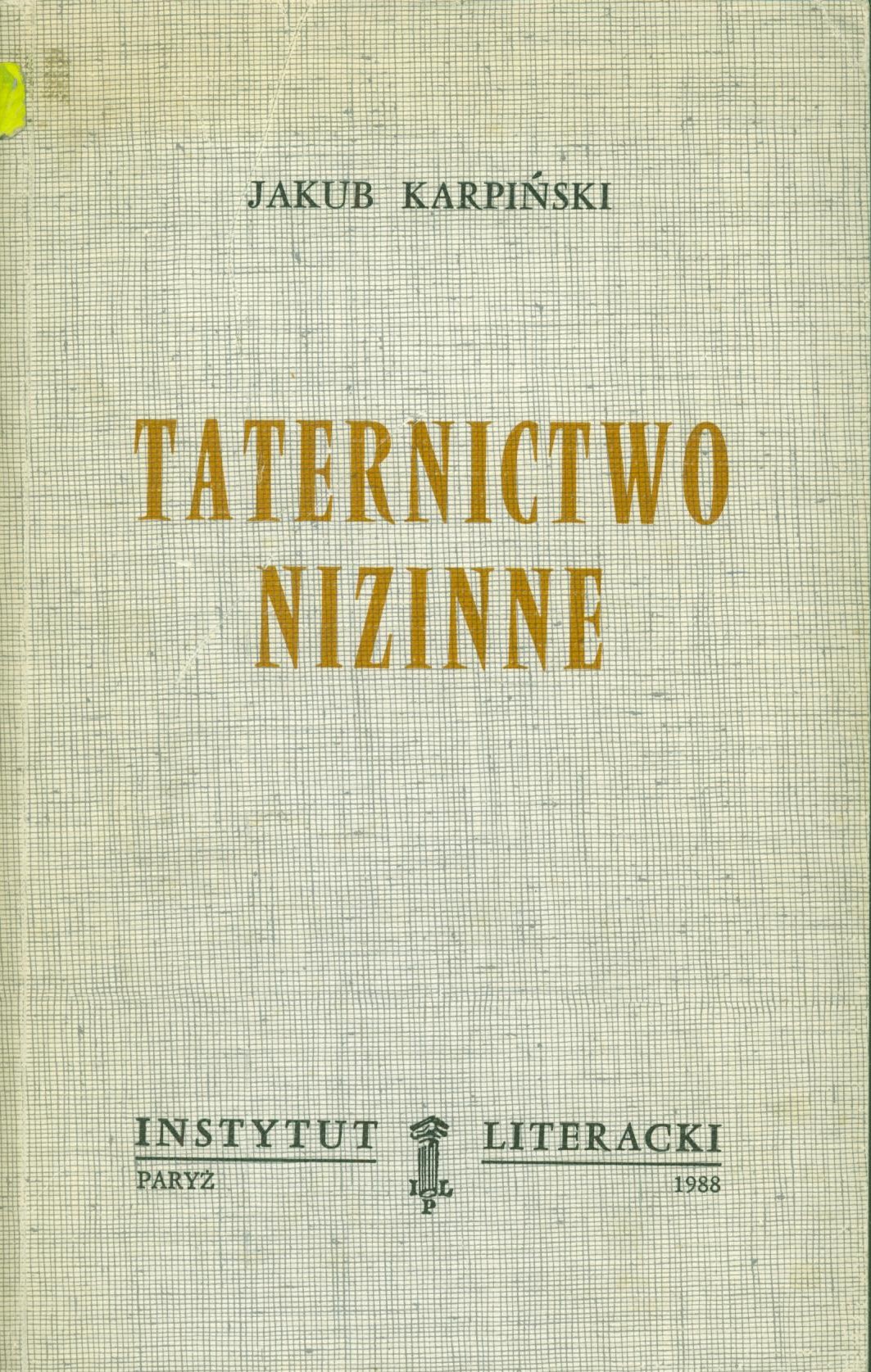 Taternictwo nizinne / Jakub Karpiński. - Paryż : Instytut Literacki, 1988. - 125, [2] strony ; 22 cm.