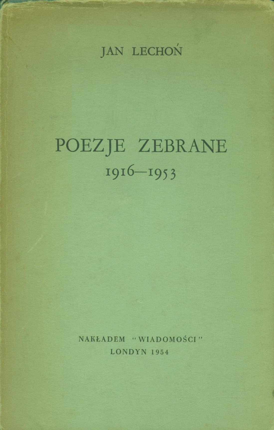 Poezje zebrane : 1916-1953 / Jan Lechoń. - Londyn : nakł. "Wiadomości", 1954. - 188 stron : ilustracje ; 22 cm.