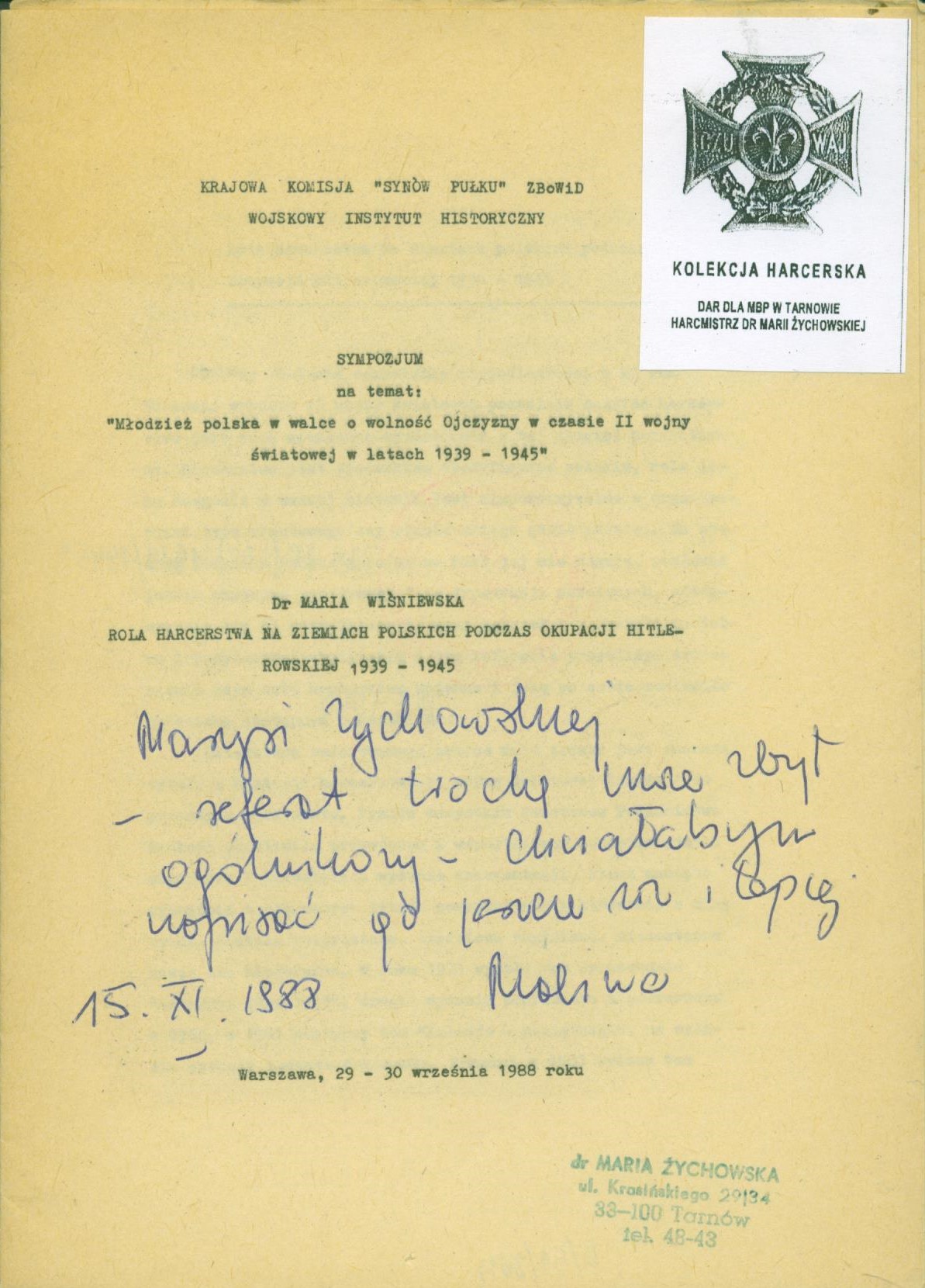 Referat wygłoszony na sympozjum na temat: "Młodzież polska w walce o wolność ojczyzny w czasie II wojny światowej w latach 1939-1945".