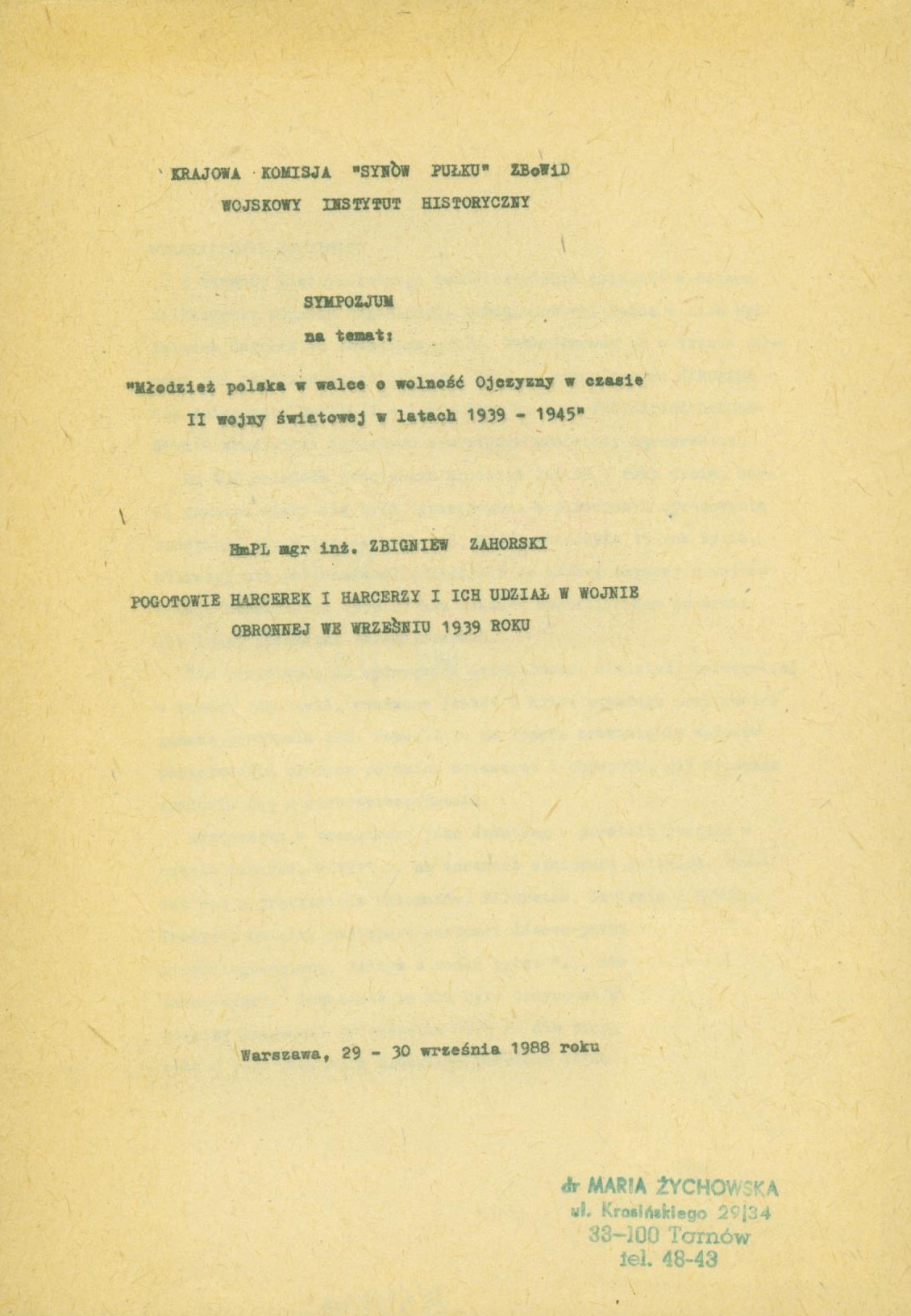Referat wygłoszony na sympozjum na temta: "Młodzież polska w walce o wolność Ojczyzny w czasie II wojny światowej w latach 1939-1945".