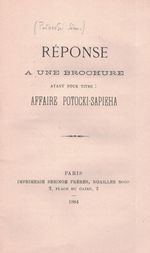 Réponse a une brochure ayant pour titre: Affaire Potocki-Sapieha