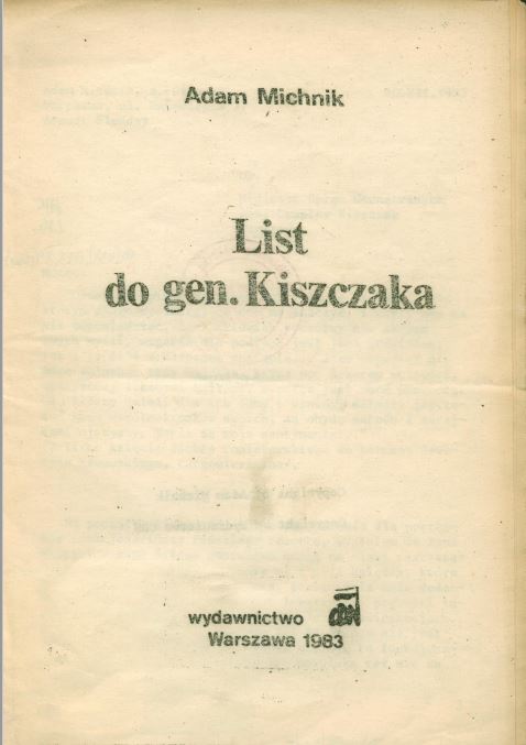Wydany w drugim obiegu list Adama Michnika do gen. Czesława Kiszczaka wysłany z aresztu śledczego oficjalną pocztą więzienną dnia 12 grudnia 1983 r.