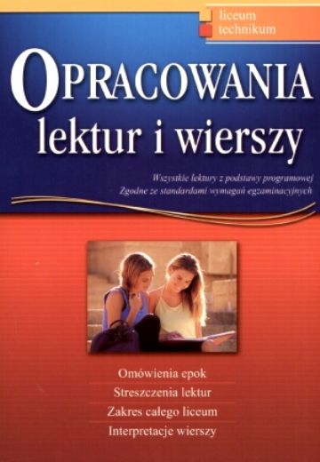 Na okładce: liceum, technikum : wszystkie lektury z podstawy programowej, zgodne ze standardami wymagań egzaminacyjnych, omówienia epok, streszczenia lektur, zakres całego liceum, interpretacje wierszy.