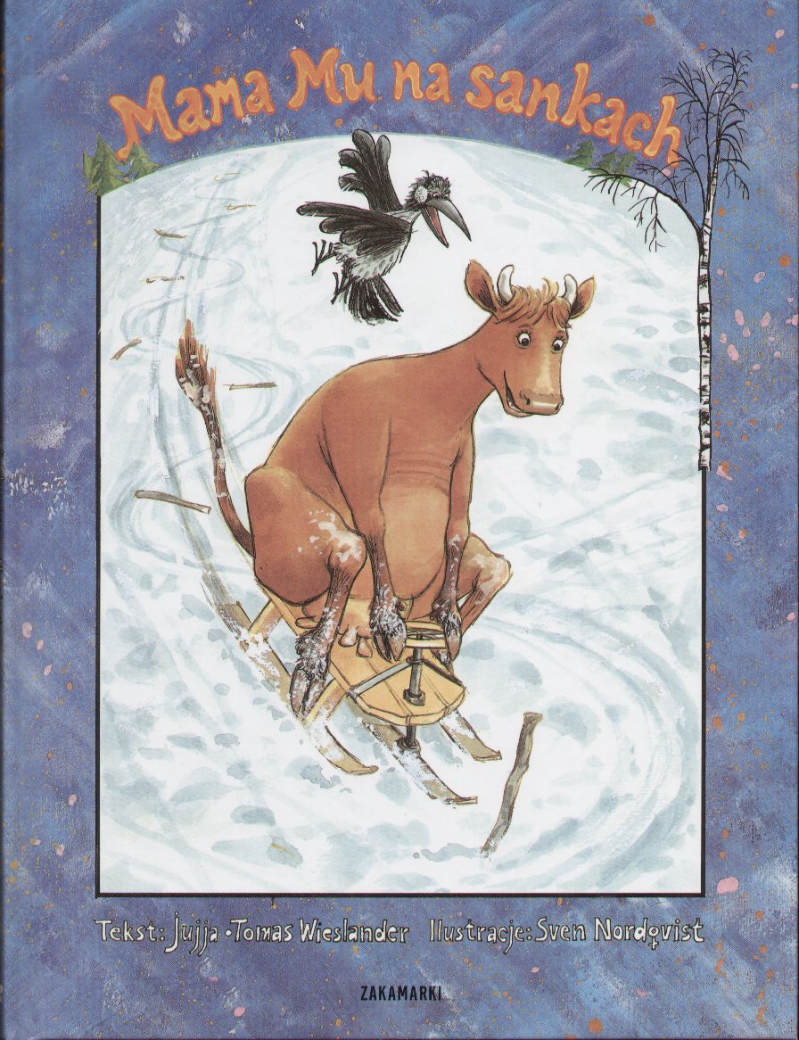 Czy krowy mogą jeździć na sankach? Ależ oczywiście, Mama Mu zrobi wszystko, by bawić się tak wesoło jak dzieci! Jak zwykle musi stawić czoła krytycznemu Panu Wronie, który każdy pomysł Mamy Mu kwituje wyniosłym oburzeniem. Wystarczy jednak zasugerować Panu Wronie, że czegoś nie potrafi, a od razu zmienia ton. On, nie potrafi? Nie potrafi pokierować sankami? Brawurowy popis jego umiejętności kończy się oczywiście w zaspie. W śniegu ląduje też Mama Mu - i to właśnie, z całego jeżdzenia na sankach, najbardziej jej się podoba! Bogate w szczegóły świetne ilustracje Svena Nordqvista, pełne niespodzianek dla spostrzegawczych, wspaniale uwydatniają charaktery obu bohaterów.