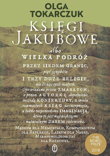 (...)ale także społecznym, religijnym, biograficznym itd. Z całą również pewnością zasłużyła na kolejną nagrodę Nike, za ogromną wnikliwość, rzetelność oraz wiedzę, którą musiał specjalnie dla potrzeb tworzenia "zdobyć". "Księgi Jakubowe" to napisana z imponującym rozmachem kilkuset stronnicowa powieść epicka, dająca możliwość szerokiej interpretacji. Jej fabuła sięga roku 1752, w którym to na Podole przybywają kasztelanowa Katarzyna Kossakowska wraz z poetką Elżbietą Drużbacką. W Rohatyniu na kolacji powitalnej wśród zaproszonych licznych gości znajduje się także proboszcz miejscowej parafii, autor pierwszej polskiej encyklopedii – Benedykt Chmielowski. Elżbieta bardzo szybko nawiązuje kontakt z tak jak ona rozmiłowanym w księgach księdzem. Swą rozpoczętą podczas kolacji dysputę będą dalej kontynuować w listach. W nieco późniejszym czasie na Podolu pojawia się też młody Żyd, niejaki Jakub Lejbowicz Frank. Ten tajemniczy przybysz ze Smyrny swą dość kontrowersyjną ideologią zaczyna dzielić zamieszkującą na Podolu społeczność żydowską. Jak nietrudno się zorientować "Księgi Jakubowe" nie są zwykłą powieścią. To refleksyjne, nieco mityczne dzieło sięgające swą historią wieku XVIII, poprzez które wybitna pisarka stara się poszukać odpowiedzi na pytania dotyczące kształtu naszej dzisiejszej części Europy. Ponadto czerpiąc niemalże garściami z tradycji powieści historycznej w fenomenalny sposób przedstawiła w niej obraz naszej dawnej ojczyzny, która stanowiła wówczas bezpieczny azyl nie tylko dla chrześcijan, ale także wyznawców judaizmu czy islamu. To moim zdaniem powieść dla prawdziwego czytelnika-pasjonata. Jeżeli ktoś chce ją przeczytać dla zasady to niech na starcie da sobie zwyczajnie z nią spokój.