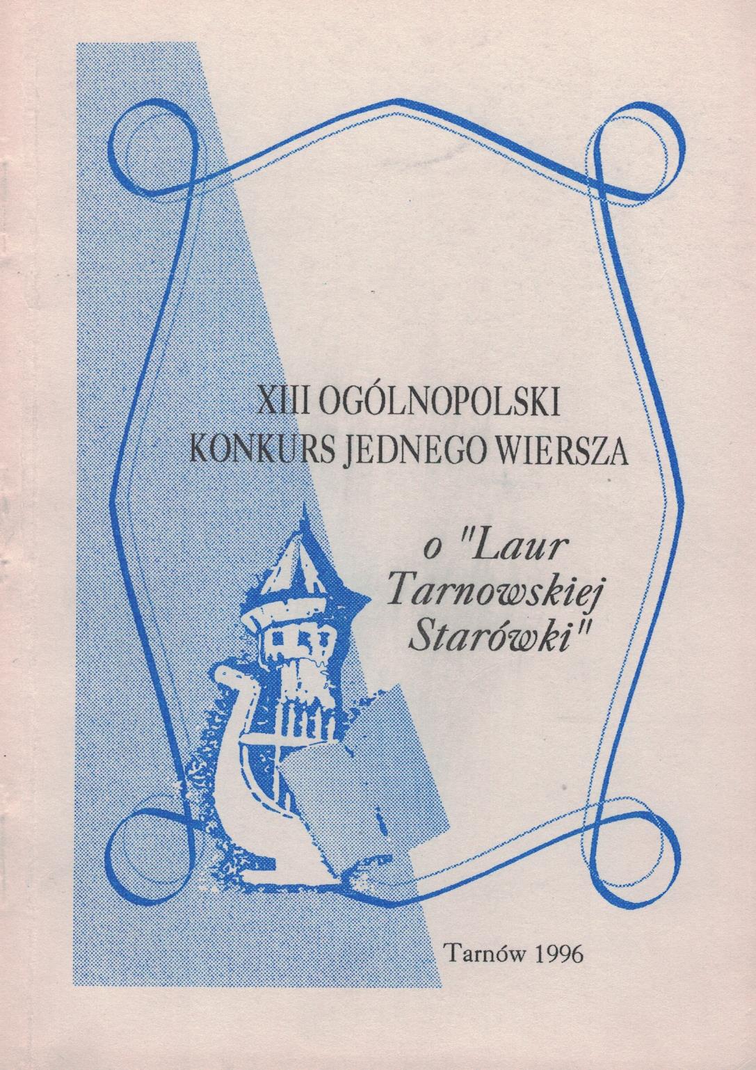 "Juz po raz trzynasty poezja gęstnieje w Tarnowie za sprawą Ogólnopolskiego Konkursu Jednego Wiersza " O Laur Tarnowskiej Starówki". Jak większość tego rodzaju konkursów w Polsce również tarnowskie święto poezji jest jedną z prób konfrontacji poetyckich talentów i jedną z szans wejścia do poetyckiej rodziny młodych autorów, do których konkurs skierowany został przede wszystkim" [ze wstępu].