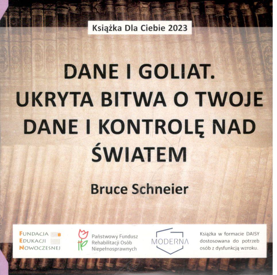 Dane i Goliat : ukryta bitwa o twoje dane i kontrolę nad światem / Bruce Schneier. - [Warszawa] : Fundacja Edukacji Nowoczesnej ; [Jelenia Góra] : Moderna, [2024]. - 1 płyta CD : zapis cyfrowy, stereo ; 12 cm.