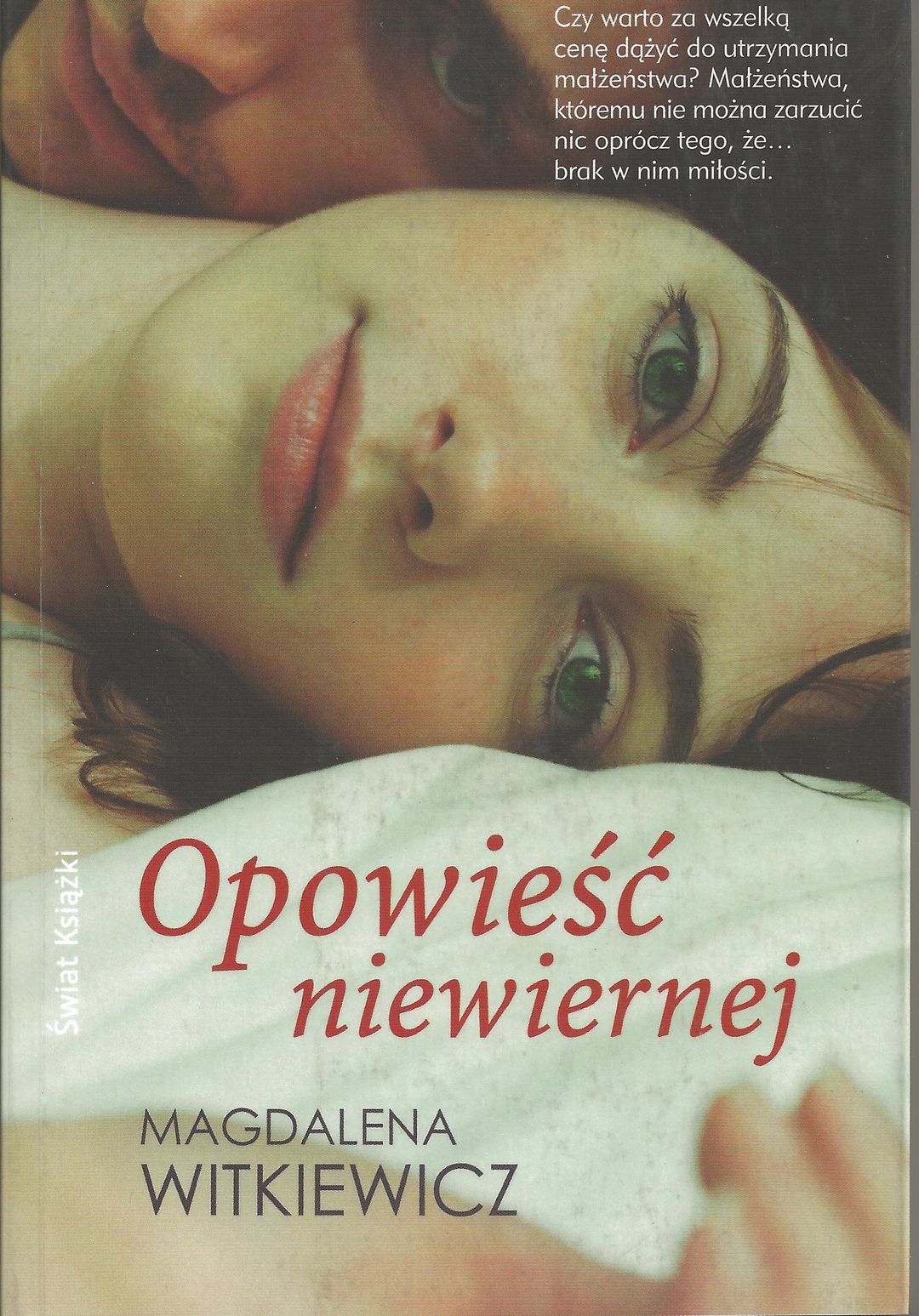 Ewa i Maciek biorą ślub. Dla niego to racjonalny krok, dla niej spełnienie marzeń. Małżeństwo nie jest jednak bajkowe. Dla Ewy zabrakło miejsca w napiętym grafiku męża. Dzieci? Temat tabu, a później powód kolejnego rozczarowania. W życiu Ewy pojawia się przyjaciel i kochanek z czasów młodości. Czy to Ewa, niewierna, jest wszystkiemu winna? Nawet w małżeństwie, któremu nie można zarzucić nic, prócz tego, że brak w nim miłości? Czy Ewa i Maciek mają jeszcze jakąś szansę? Autorka nie daje jednoznacznych odpowiedzi - nie osądza, ale dotyka sedna, opowiada o potrzebie miłości i o samotności najtrudniejszej do zniesienia - samotności we dwoje.[lubimyczytac.pl].