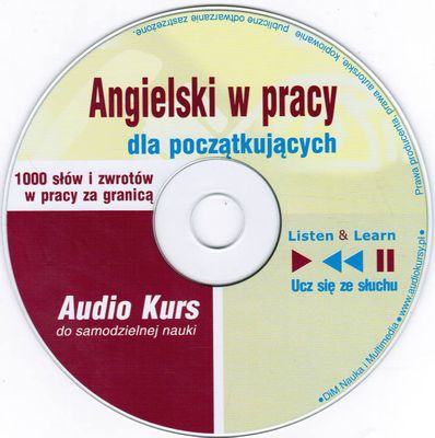 Na okł. : Angielski w pracy dla początkujących ; Audio kurs do samodzielnej nauki ; W dowolnym miejscu i czasie, bez nauczyciela i podręczników, w naturalny sposób ze słuchu - U góry okł.: Listen & Learn - Ucz się ze słuchu !.