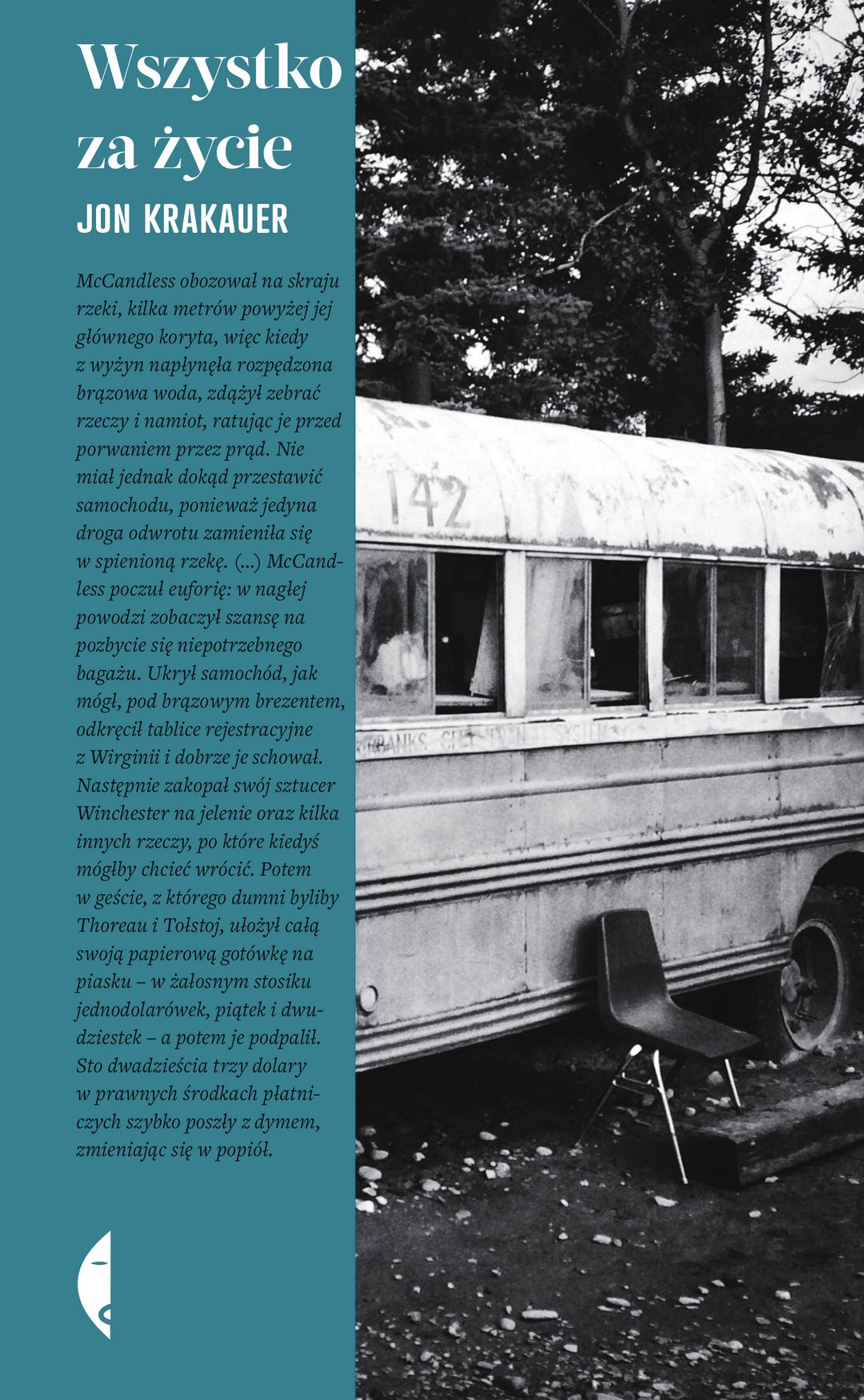 Chris McCandles był chłopakiem z dobrego, zamożnego domu. Miał troskliwych rodziców i kochającą siostrę. Ukończył college i szykował się do studiów prawniczych. Ale właśnie wtedy postanowił wypisać się z klasy średniej, oddał wszystkie pieniądze i ruszył w drogę. Od Meksyku po Alaskę – jeździł autostopem, pociągami towarowymi, wędrował na piechotę, spływał kajakiem. Łatwo zaprzyjaźniał się z poznanymi po drodze ludźmi i równie łatwo te przyjaźnie zrywał, by szukać samotności w dziczy. Nie był jednak zwykłym awanturnikiem i łowcą przygód – raczej filozofem i idealistą. Ukoronowaniem jego życia miała być „ostatnia, największa przygoda, kulminacyjna bitwa, żeby zabić fałszywy wewnętrzny byt i ogłosić triumfalny koniec duchowej rewolucji”. Jon Krakauer podąża tropem „supertrampa”, jak sam siebie nazywał McCandles. Na podstawie jego zapisków, listów, rozmów z jego przyjaciółmi stara się odtworzyć losy współczesnego Robinsona i wyjaśnić zagadkę jego odejścia. Ta przepiękna historia młodości, buntu i poszukiwania wolności od kilkudziesięciu lat inspiruje nie tylko czytelników, ale także artystów. Na jej podstawie powstał niezapomniany film w reżyserii Seana Penna. "Przeczytałem tę książkę dwa razy, niemal bez przerw – od deski do deski. Za pierwszym razem widziałem w mojej wyobraźni film, a za drugim po prostu rozkoszowałem się lekturą. Najbardziej poruszyło mnie w tej historii to, że ten dzieciak w tak krótkim czasie zdołał przeżyć swoje życie w pełni. Niewielu ludziom się to udaje." Sean Penn