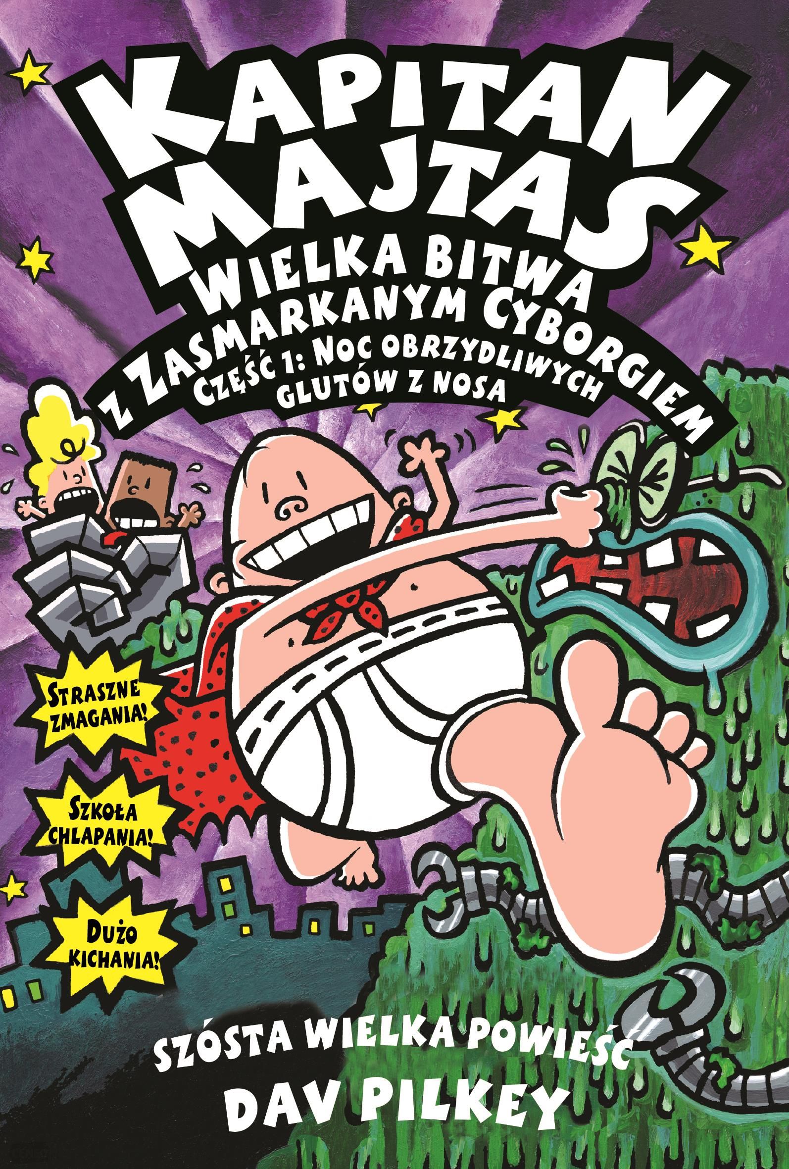 George i Harold znów wpakowali się w kłopoty. Melvin Sneedly – szkolny superprymus – postanawia się na nich zemścić za wszystkie ich głupie dowcipy. Pracując nad swoim kolejnym wynalazkiem, zamiast superchłopaka konstruuje Zasmarkanego Cyborga! Czy majtasowa moc obezwładni oślizłego potwora, czy też gigantyczny gil zaleje cały świat?