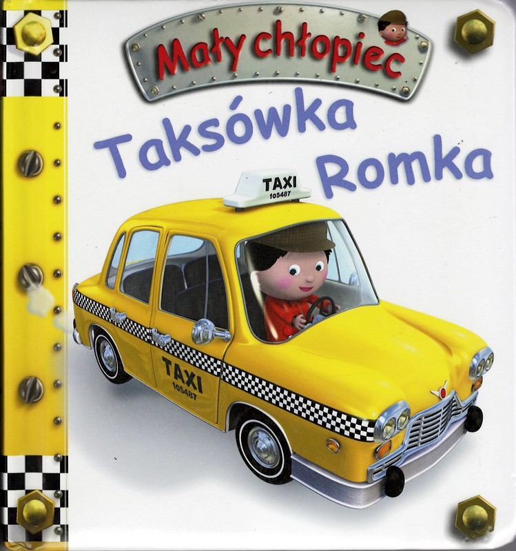 Prościutka, ładnie ilustrowana historyjka o taksówkarzu Romku i jego pojeździe.