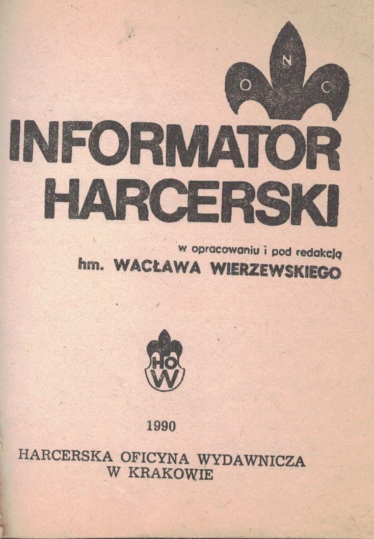 Informator harcerski / w opracowaniu i pod redakcją hm. Wacława Wierzewskiego ; [przy opracowaniu współpracowali Paweł Raj et alia]. - Kraków : Harcerska Oficyna Wydawnicza, 1990. - 528, [8] stron, tablice : fotografie, mapy, nuty, portrety, ilustracje (w tym kolorowe) ; 15 cm.