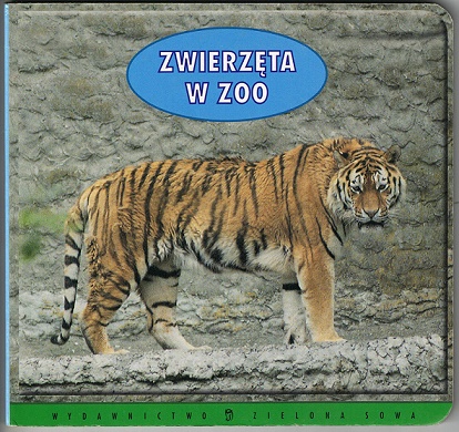Książka obrazkowa dla najmłodszych prezentująca zdjęcia popularnych zwierząt najczęściej spotykanych w ogrodach zoologicznych. Przed wami: zebra, słoń, hipopotam, lwy, tygrys, małpy (pawiany), wielbłąd, kangur, niedźwiedzie polarne oraz żubr.