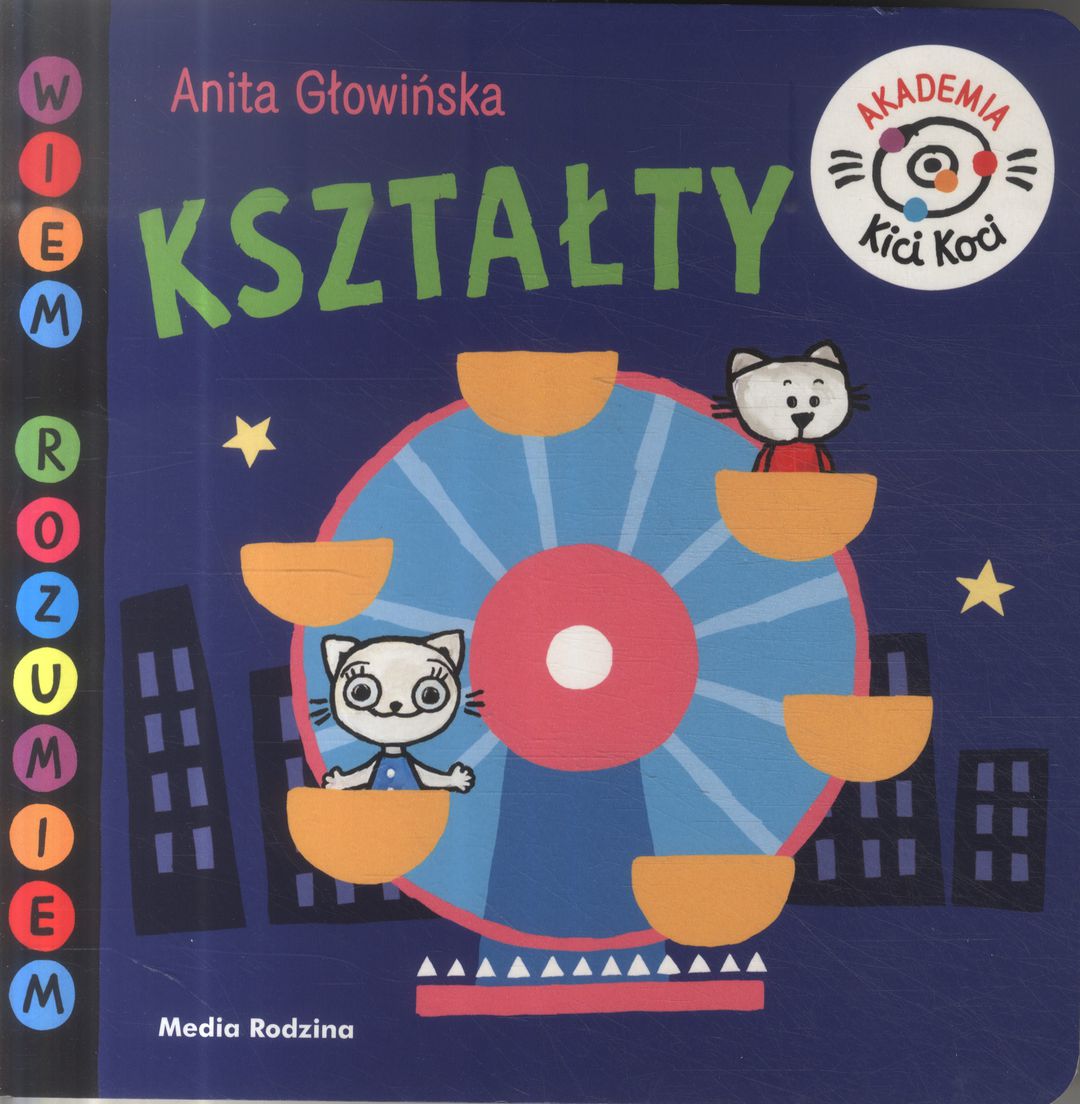 Pod hasłem „Wiem. Rozumiem.” autorka, Anita Głowińska, zaprasza dzieci do poznawania wraz z rezolutną kotką najbliższej im rzeczywistości. Na twardych kartach książek nowego cyklu w przystępny sposób zaprezentowane zostaną najmłodszym najpopularniejsze pojazdy, najpiękniejsze kolory i najciekawsze kształty, a także proste historyjki, które wprowadzą maluchy w świat podstaw języka angielskiego. „Kształty” to piąta książeczka z serii Akademia Kici Koci , w której Kicia Kocia i Nunuś uczą maluchy.