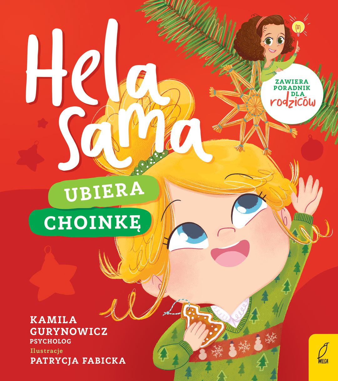 Hela sama… to seria książek o małej dziewczynce (Heli), która każdego dnia uczy się nowych rzeczy. Książki zawierają bezcenną wiedzą w postaci poradnika dla rodziców, który podpowiada, jak uporać się z problemami typu: odsmoczkowanie, opieluchowanie, zachęcenie do jedzenia wszystkich pokarmów itd. Ubiera choinkę - Nadchodzą święta! Hela otwiera ostatnie liściki z kalendarza adwentowego. Bardzo cieszą ją wykonywane zadania - będzie ubierać choinkę! Hela razem z rodzicami kupuje drzewko po czym z tatą zawiesza bombki. Rodzina jest razem i wesoło spędza czas, nie przeszkadzają im drobne nieporozumienia, np. kiedy na czubku drzewka nie mieści się gwiazda. W książce jak zwykle pojawiły się porady: jakie prezenty kupować dzieciom na święta i kiedy je wręczać. [platon.pl].