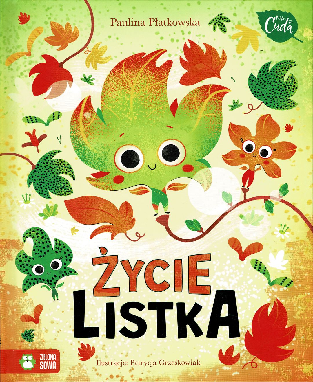 Czy życie listka jest nudne? Jak zmieniają się pory roku? Co dzieje się z liśćmi, gdy spadną z drzewa? Mały listek klonu budzi się do życia wiosną. Główny bohater przeżywa kolejne pory roku – latem jest w pełni sił, a jesienią żółknie i czuje, że wkrótce zerwie go wiatr. Finalnie opada na ziemię. „Życie listka” to nie tylko bajka, która tłumaczy dzieciom zjawiska przyrodnicze. To także przepiękna historia, którą można odnieść do świata ludzi. Na przykładzie tytułowego bohatera można opowiadać dziecku o cyklu życia, a także o śmierci. Listek spodziewa się jej i zachowuje spokój. Mówi, jaki będzie dalszy ciąg, że z gleby, którą za jakiś czas się stanie, wyrosną nowe, wspaniałe rośliny i że taka jest naturalna kolej rzeczy. Seria „Mikrocuda” kieruje uwagę dzieci w stronę świata przyrody – drobnych niezwykłości, cudów natury, wspaniałych, choć codziennych zjawisk i przemian. Zaspokaja ciekawość małych odkrywców i odpowiada na ich nieoczywiste pytania. Książki zachęcają nie tylko do czytania! Na wielu stronach zamieszczone zostały „gry wyobraźni” – dodatkowe aktywności, zadania do wykonania. Maluchy często rozpiera energia, nie potrafią na długo skupić uwagi, gdy ktoś im czyta. Jeśli rodzic widzi, że dziecko się rozkojarza, w dowolnej chwili może mu zaproponować grę wyobraźni albo wykonanie ćwiczenia. Energia zostaje rozładowana, a skupienie wraca.