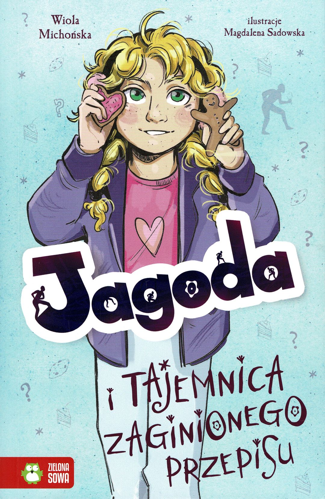 Ginie strona z przepisem na najsłynniejsze ciasto z cukierni pani Eli i pana Emila. Złodziej wyrwał kartkę z – przekazywanego od pokoleń – zeszytu z recepturami na wypieki. Wszystkie dzieciaki nadzieję na rozwiązanie tej zagadki pokładają w Jagodzie i Indze. Jednak tym razem dziewczynki zamierzają trzymać się z daleka od poszukiwania sprawcy kradzieży. Jak się okazuje, tropy same podsuwają są pod ich nosy… Jagoda to wygadana uczennica szkoły podstawowej, bohaterka serii detektywistyczno-przygodowej. Książki świetnie nadają się do samodzielnego czytania – wciągająca fabuła, duży font i dynamiczne ilustracje sprawiają, że trudno się od nich oderwać. Na końcu każdej z nich na czytelników czeka bonus w postaci zagadki, w której rozwiązaniu pomóc możemy Jagodzie.