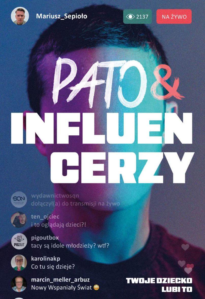 Opis z okładki książki "Pato&influencerzy. Twoje dziecko lubi to": Poniżanie, wyzwiska, przemoc – na żywo, dla każdego. Wystarczy kliknąć. Kim są ludzie, którzy ekranów smartfonów kształtują gusta i postawy naszych dzieci? Mariusz Sepioło zagląda za kulisy zgniłego, zdemoralizowanego świata „internetowych gwiazd”. Jako pierwszy dziennikarz w Polsce zagląda do akt sądowych, w których oskarżeni i skazywani byli influencerzy z czołówek plotkarskich portali. Wchodzi do mieszkania, w którym właśnie trwa patostream, rozmawia z youtuberami, patostreamerami i influencerami. Dociera dalej, pod powierzchnię, gdzie są poważne przestępstwa, narkotyki, wielkie pieniądze, seks i śmierć. Oddaje również głos drugiej stronie –psychologom społecznym i socjologom oraz menedżerom agencji, którzy współpracują z internetowymi twórcami. To opowieść o świecie dostępnym za jednym kliknięciem. To historie młodych ludzi, którzy stali się idolami swoich rówieśników, choć nie byli przygotowani do tej roli. To również pytanie o to, ile naprawdę wiemy o naszych dzieciach, ich problemach, marzeniach, lękach i wartościach. Niekiedy zaglądamy im przez ramię i zerkamy na rozświetlony ekran. Ale co tak naprawdę dostrzegamy? Opis przygotowany przez SQN Store: Kim są ludzie, którzy towarzyszą naszym dzieciom dzień i noc, zdobywając ich bezgraniczne zaufanie? Jak to się stało, że w oczach najmłodszych osiągnęli status niemal bogów? Reportaż „Pato&influencerzy. Twoje dziecko lubi to” Mariusza Sepioło to opowieść o świecie dostępnym za jednym kliknięciem. Może nam się wydawać, że wiemy o nim wszystko – ale to tylko złudzenie. Świat influencerów i patostreamerów, który fascynuje i przyciąga miliony młodych ludzi, skrywa niejedną mroczną tajemnicę. Przekonał się o tym dziennikarz śledczy Mariusz Sepioło, który przeprowadził dziesiątki rozmów z influencerami, menedżerami z dużych agencji influencerskich, a także psychologami społecznymi i socjologami, którzy badają fenomen internetowych gwiazd. Mariusz Sepioło jako pierwszy dotarł do akt spraw kryminalnych, w których patostreamerzy i influencerzy z czołówek portali plotkarskich zasiedli na ławie oskarżonych. Sprawdził, co dziś dzieje się z upadłymi gwiazdami sieci. Odtworzył też przebieg oraz przeanalizował przyczyny i konsekwencje jednej z największych afer w historii polskiego internetu – tak zwanej Pandora Gate. Świat nie dzieli się już na „real” i „virtual”. Internet to życie, życie to Internet. Dlatego warto przeczytać tę książkę – ku świadomości i przestrodze. Opinie o książce "Pato&influencerzy. Twoje dziecko lubi to": Oto niezbędnik zrozumienia dzisiejszego świata. Ludzie zawsze chcieli cyrku i igrzysk. Zawsze stały za tym pieniądze i upokorzenie. Dzisiaj stoją za tym media. I jeszcze większe pieniądze i sława. I poniżenie na oczach świata. Co się dzieje? Żeby to zrozumieć, przeczytaj tę książkę. Karolina Korwin-Piotrowska Wasze dzieci ich znają, czas na Was. Nie będzie to doświadczenie przyjemne, czasem wręcz odrażające. Jak zareagujecie, to Wasza sprawa, ale najpierw musicie się dowiedzieć, z czym macie do czynienia. A do tego książka Mariusza Sepioło jest idealnym pierwszym krokiem. Marcin Meller Jak usłyszałem, że wychodzi książka o polskich influencerach i mnie w niej nie ma, było mi przykro. A później ją przeczytałem i kamień z serca. PigOut Czyta się to jak true crime, a jest to książka o influencerach, których może oglądać i lubić twoje dziecko. Biorąc pod uwagę to, że tacy patocelebryci mają na młodych ludzi ogromny wpływ, a z niektórymi dzieciakami spędzają więcej czasu niż ich rodzice… myślę, że warto się im przyjrzeć. Patryk Bryliński @ten_ojciec Recenzje: Rodzicu, nauczycielu, pedagogu, opiekunie - koniecznie tę książkę dopisz do listy #mustread. Bo dla Ciebie jest ta książka, nie dla młodzieży. lubimyczytac.pl: BookOnFace Nie spodoba wam się ten reportaż. Jeśli wydawało wam się, że ogarniacie co się dzieje w internecie, odkryjecie, że faktycznie tylko wam się wydawało. Oczywiście nie musicie tego czytać, ale żeby później, jak znowu jakieś guano wybije, nie było, że nikt nie ostrzegał. PigOut