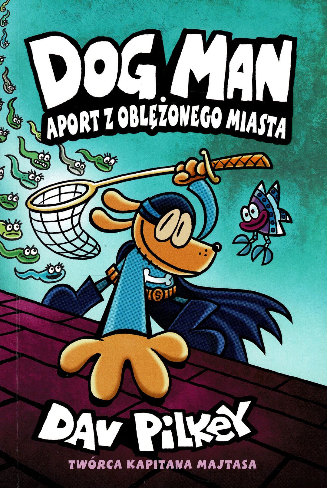 W ósmej części serii, na czytelników czeka emocjonująca przygoda, pełna zwrotów akcji i humoru. Dogman Aport z oblężonego miasta to kolejna porcja niezwykłych przygód, w której pojawia się Straszny Dziadunio. Jego mroczne plany wciągają postacie w wir niebezpieczeństw. W tej odsłonie, nie-dobra Wróżka Wzruszka wykorzystuje swoje niechlubne moce, by zrealizować zemstę na społeczeństwie, które ją odrzuciło. Jej psychokinetyczne kijanki oraz naiwne drzewo o imieniu Korek stają się narzędziami w jej niecnych zamiarach, co wprowadza chaos do świata bohaterów.