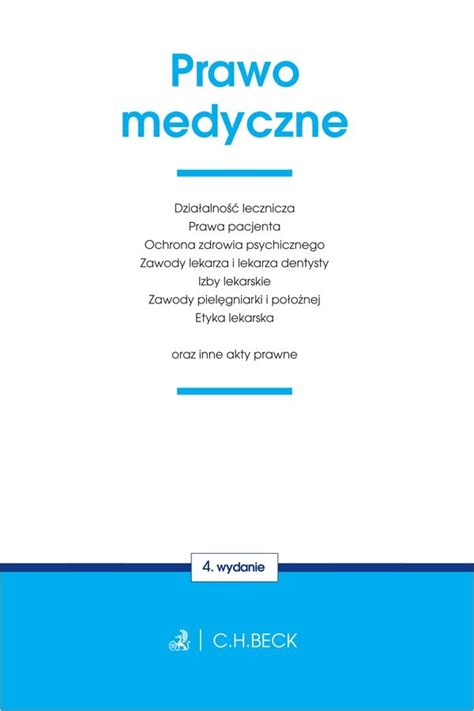 Prawo medyczne / [wprowadzenie oraz dobór aktów: Rafał Kubiak]. - 5. wydanie, stan prawny: luty 2025 r., obejmuje zmiany wchodzące w życie: 14.3.2024 r. (Dz.U. z 2022 r. poz. 2600 ze zm.), 25.10.2024 r. (Dz.U. z 2024 r. poz. 854), 1.1.2025 r. (Dz.U. z 2020 r. poz. 1291 ze zm., Dz.U. z 2024 r. poz.1897), 16.1.2025 r. (Dz.U. z 2024 r. poz. 1897), 13.2.2025 r. (Dz.U. z 2024 r. poz. 1228), 14.2.2025 r. (Dz.U. z 2025 r. poz. 129) oraz w podwójnym stanie prawnym: 1.9.2025 r. (Dz.U. z 2024 r. poz. 1897), 1.1.2027 r. (Dz.U. z 2024 r. poz. 1897), 1.1.2028 r. (Dz.U. z 2018 r. poz. 1532). - Warszawa : C. H. Beck, © 2025. - XXVII, [1], 772 strony ; 20 cm.