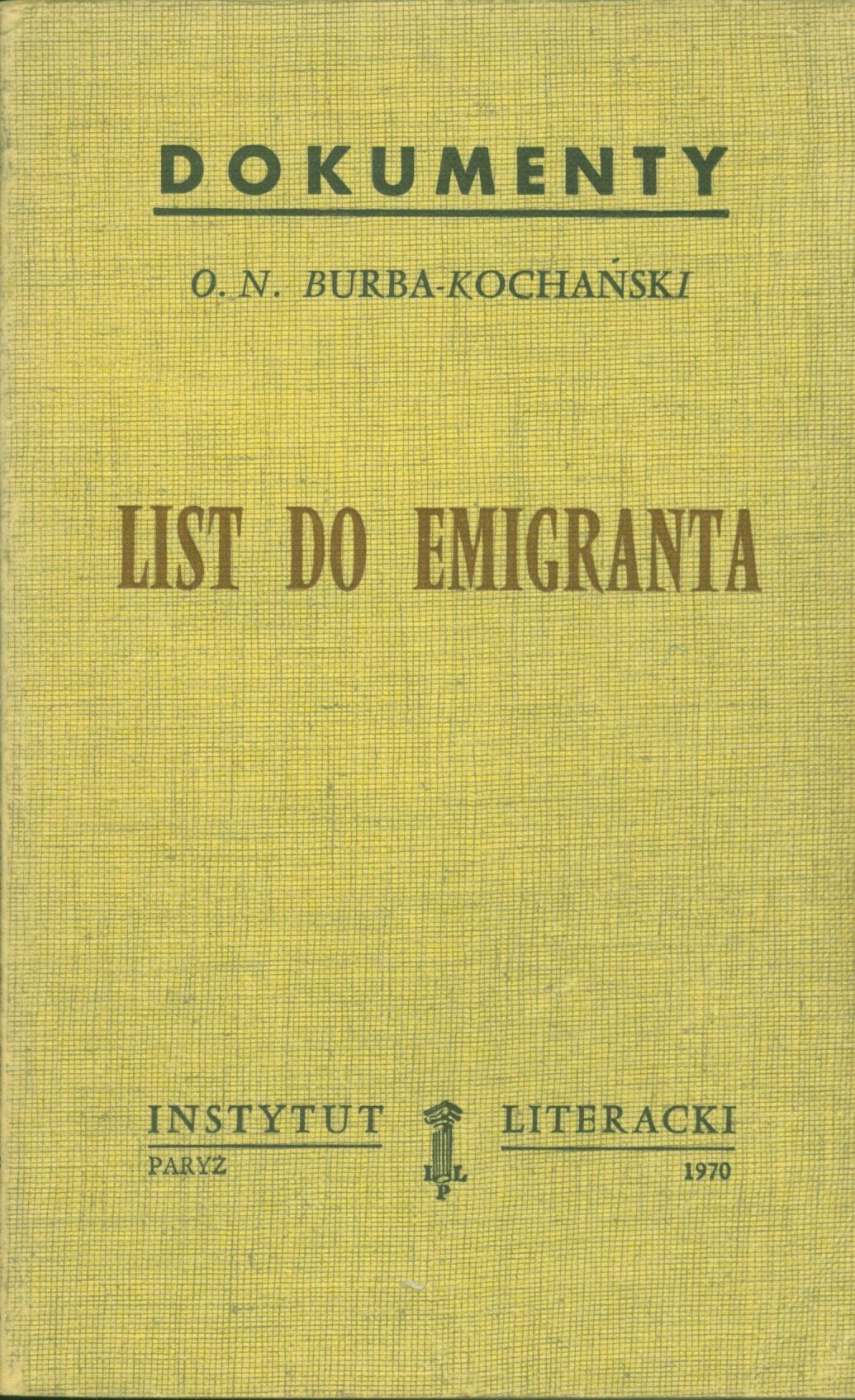 List do emigranta / O. N. Burba-Kochański. - Paryż : Instytut Literacki, 1970. - 126, [2] strony ; 22 cm.