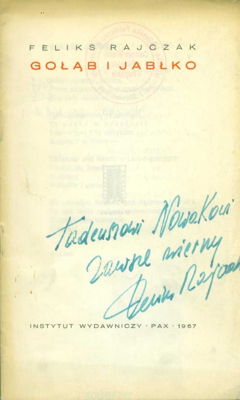 Gołąb i jabłko / Feliks Rajczak. - Warszawa : "Pax", 1967. - 19, [2] strony ; 18 cm.