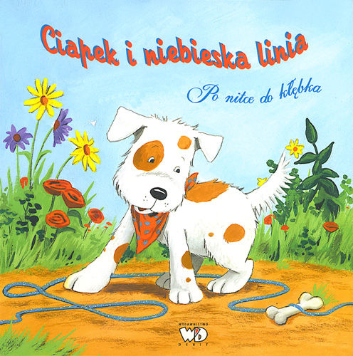 Zaciekawiony piesek Ciapek idzie śladem błyszczącej niebieskiej linii. Ruszajmy razem z nim! Prowadźmy paluszkiem po lśniącej linii przez staw i przez piaskownicę, w górę i w dół, przez uchylone drzwi, zataczamy pętlę, aż trafiamy do… No właśnie, dokąd? /nota wydawnicza/