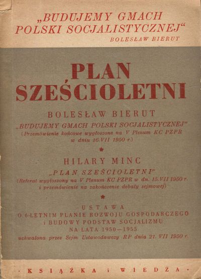 Budujemy gmach Polski socjalistycznej / Bolesław Bierut. Plan sześcioletni rozwoju gospodarczego i budowy podstaw socjalizmu w Polsce ; Ustawa o planie sześcioletnim nowym Manifestem Lipcowym / Hilary Minc. Ustawa o 6-letnim planie rozwoju gospodarczego i budowy podstaw socjalizmu na lata 1950-1955, uchwalona przez Sejm Ustawodawczy RP 21.VII.1950 r.