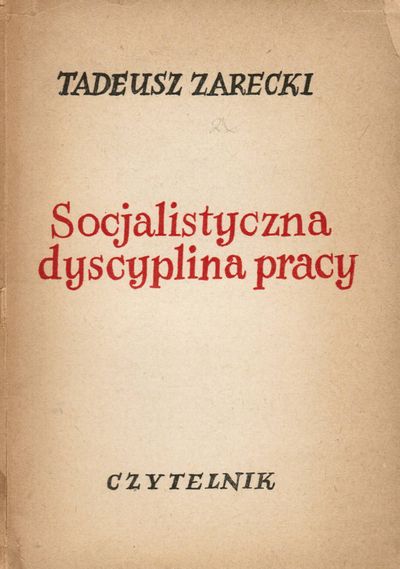 Socjalistyczna dyscyplina pracy / Tadeusz Zarecki. - [Warszawa] : "Czytelnik", 1951. - 103, [1] strona ; 17 cm.