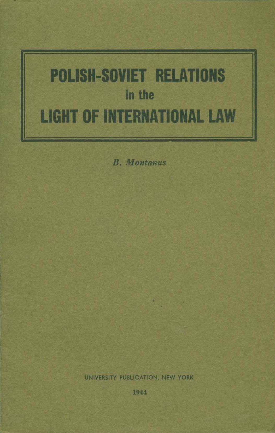 Polish-Soviet relations in the light of international law / B. Montanus. - New York : University Publ., 1944. - [5], 54 strony, [1] karta tablic : mapa ; 21 cm.