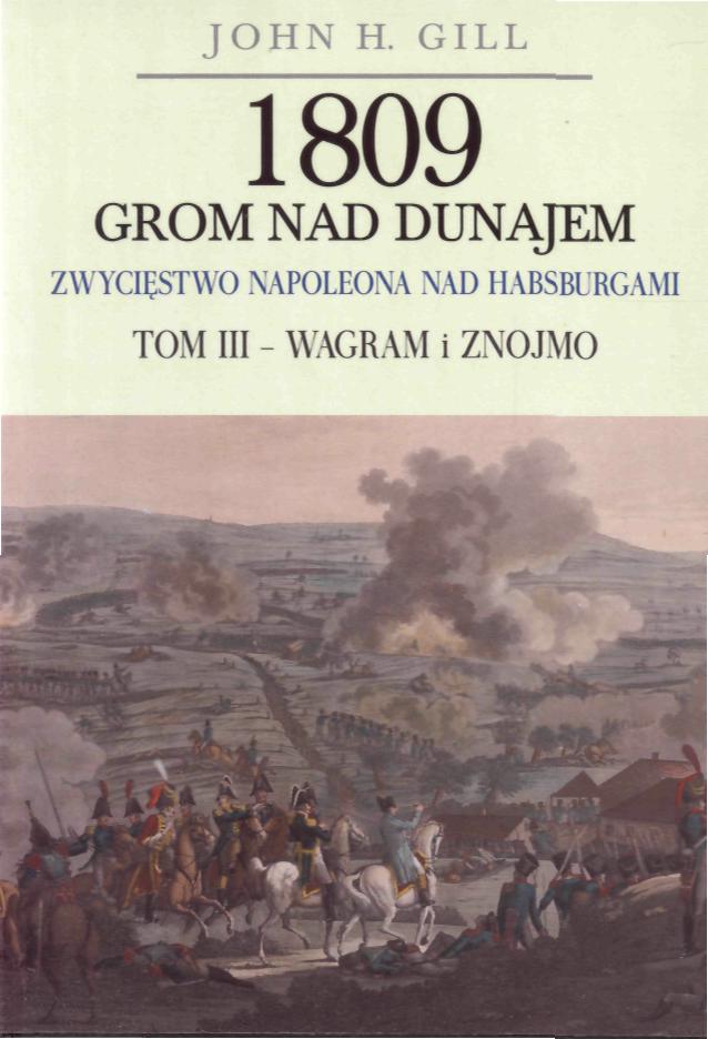 Niniejszy tom kończy trylogię Gilla, opisującą kampanię 1809 roku. Jest on bodaj najobszerniejszy z wszystkich, co spowodowały między innymi liczne załączniki na końcu pracy. Pracę rozpoczyna rozdział poświęcony działaniom na ziemiach polskich. Ponieważ jest to szczególnie bliskie fanom epoki napoleońskiej w naszym kraju trzeba przyznać, że autor umiejętnie wywiązał się z zadania i obiektywnie przeprowadził wywód, objaśniający przebieg walk na tym obszarze. Ciekawe jest spojrzenie człowieka, który nie pozostaje związany z naszą historią i zupełnie z zewnątrz spogląda na opisywane wydarzenia. Tym bardziej miło jest czytać pochwały pod adresem księcia Józefa i polskich żołnierzy. Następne rozdziały przenoszą nas na teren działań Armii Włoch i próbującej jej stawić czoło Armii Austrii Wewnętrznej, wspieranej przez węgierskie pospolite ruszenie oraz na obszar Tyrolu. W tym ostatnim Austriacy (a zasadniczo wspierani przez nich rdzenni mieszkańcy) odnieśli sporo sukcesów, które przedłużyły konflikt w tym rejonie. Kolejne rozdziały kierują nas na główny front walk zajmując się odpowiedni przygotowaniami do przeprawy i walnej bitwy, w postaci tytanicznego starcia pod Wagram i pościgu po tejże bitwie zakończonego walkami pod Znojmem. Ostatni rozdział omawia zamykające kampanię starcia na odległych obszarach operacyjnych oraz rokowania pokojowe. W ostatnim tomie nie mogło zabraknąć podsumowania wojny, jak również oceny obu stron. Autor wybiegł również nieco w przyszłość opisując jakie wnioski wyciągnęły wojujące kraje z kampanii, jak również konsekwencje wojny dla Austrii i Francji [znak.com.pl