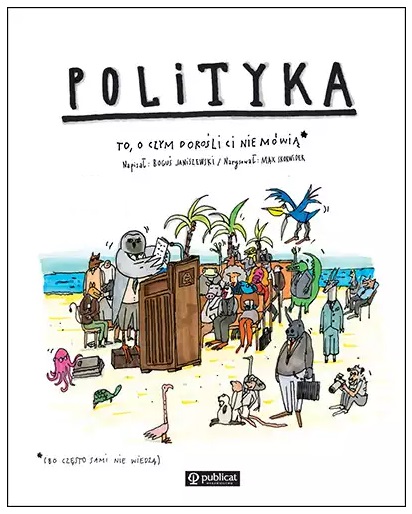 Nie ma zbyt skomplikowanych tematów dla młodego czytelnika. Prosty język, humor i wyjątkowe ilustracje sprawiają, że z pozoru trudne polityczne sprawy stają się zrozumiałe dla wszystkich (od 9 do 113 lat). Po co jest władza i jak ją zdobyć? Czy demokracja to najlepszy sposób na rządzenie? Do czego potrzebne jest państwo? Skąd państwo bierze pieniądze, czemu zawsze ode mnie i dlaczego aż tyle? Dlaczego politycy przepadają za kiełbasą wyborczą i czy można się nią przejeść? Przed czym chroni Konstytucja i dlaczego jest taka ważna? Jak zorganizować demonstrację albo zrobić małą rewolucję? Lektura obowiązkowa dla każdego młodego obywatela! Książka, którą czytelnik ma w ręku, w prosty, zrozumiały sposób próbuje oddać mechanizmy rządzące współczesną polityką. Autorowi udało się, w dużej mierze dzięki licznym przykładom, porównaniom i metaforom, w sposób przystępny i interesujący opowiedzieć o sferze polityki. Książka ni zawiera suchych faktów, które każdy dziś znajdzie w Internecie, lecz wyjaśnia istotę polityki i umożliwia młodym ludziom zrozumienie jej zasad. Dlatego też polecamy ją rodzicom, którzy chcą, a nie wiedzą jak, wprowadzić swoje pociechy w tajemniczy (nawet dla nich) świat współczesnej polityki. /Nota wydawnicza/