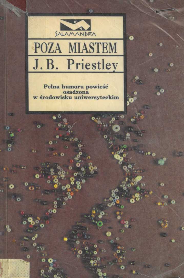 J. B. Priestley ( ur.1894) wybitny pisarz angielski, eseista i dramaturg, dobrze znany jest polskiemu czytelnikowi jako autor powieści: "Zaćmienie w Gretley", "Słońce zachodzi w sobotę", "W starym kraju", oraz wielu sztuk teatralnych m.in. "Pan Inspektor przyszedł". W najnowszej powieści pt. "Poza miastem", wydanej w Londynie w 1968 r., Priestley ukazuje w krzywym zwierciadle satyry przedstawicieli środowisk naukowych w Anglii i na Zachodzie, zwłaszcza socjologów, a także ludzi prasy, radia i telewizji, polityków i businessmenów.