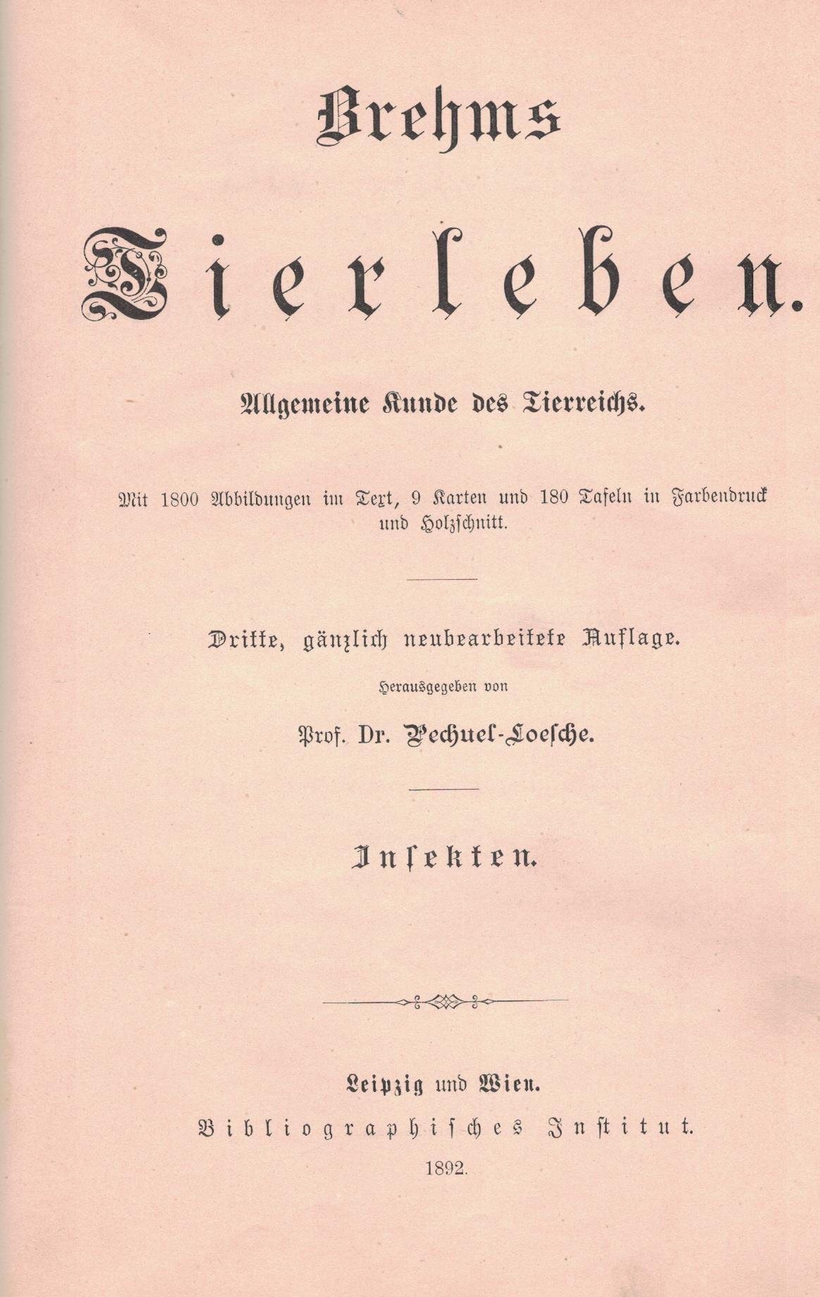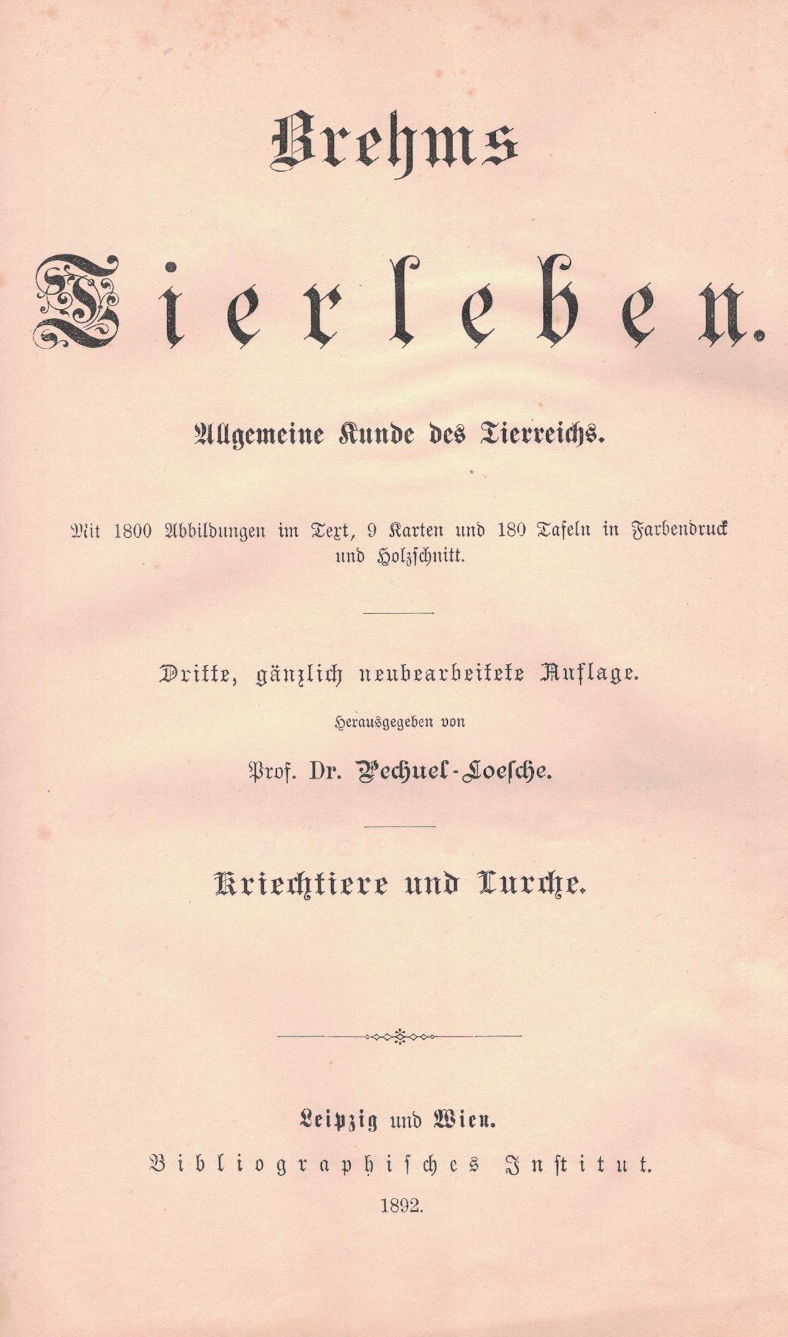 Brehms Tierleben : allgemeine Kunde des Tierreichs. Bd. 8, Die Fische - 3, gänzlich neubearbeitete Auflage / von Pechuel-Loesche. - Leipzig ; Wien : Bibliographischen Institut, 1892. - XVIII, 517, [7] stron, [12] kart tablic : ilustracje, mapy ; 26 cm.